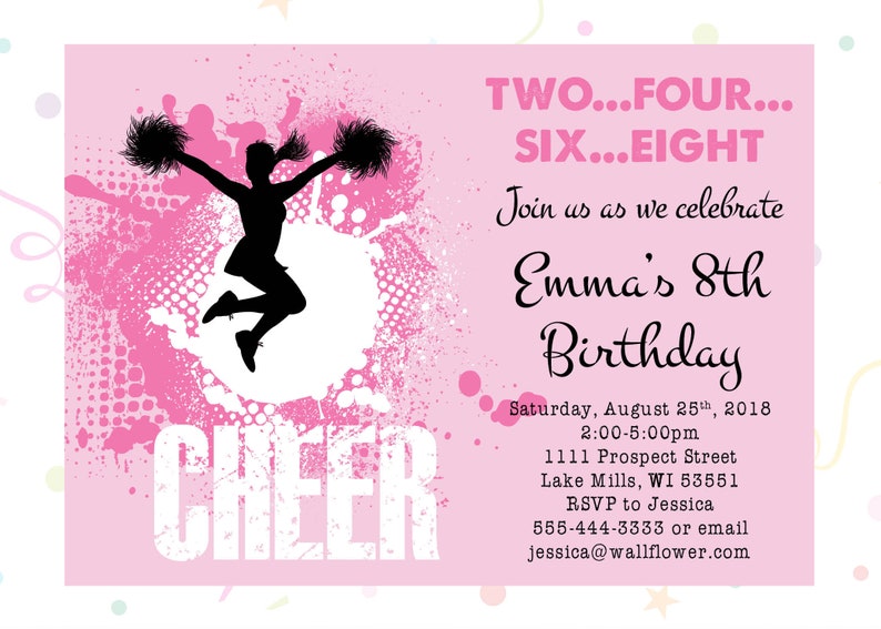 Pink Cheerleading Birthday Party Invitation | Zazzle.com from rlv.zcache.com Invitations > party by theme invitations > cheerleading / cheerleader. Get 50% off your order with mixbook's special offer. The perfect party invitation for the perfect party.