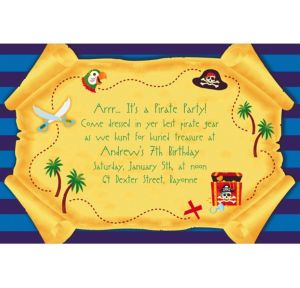 Images. Pirate invitations shout ahoy matey! Pirate birthday party invitations are a favorite of all hearty sea dogs whether they be girls and boys.