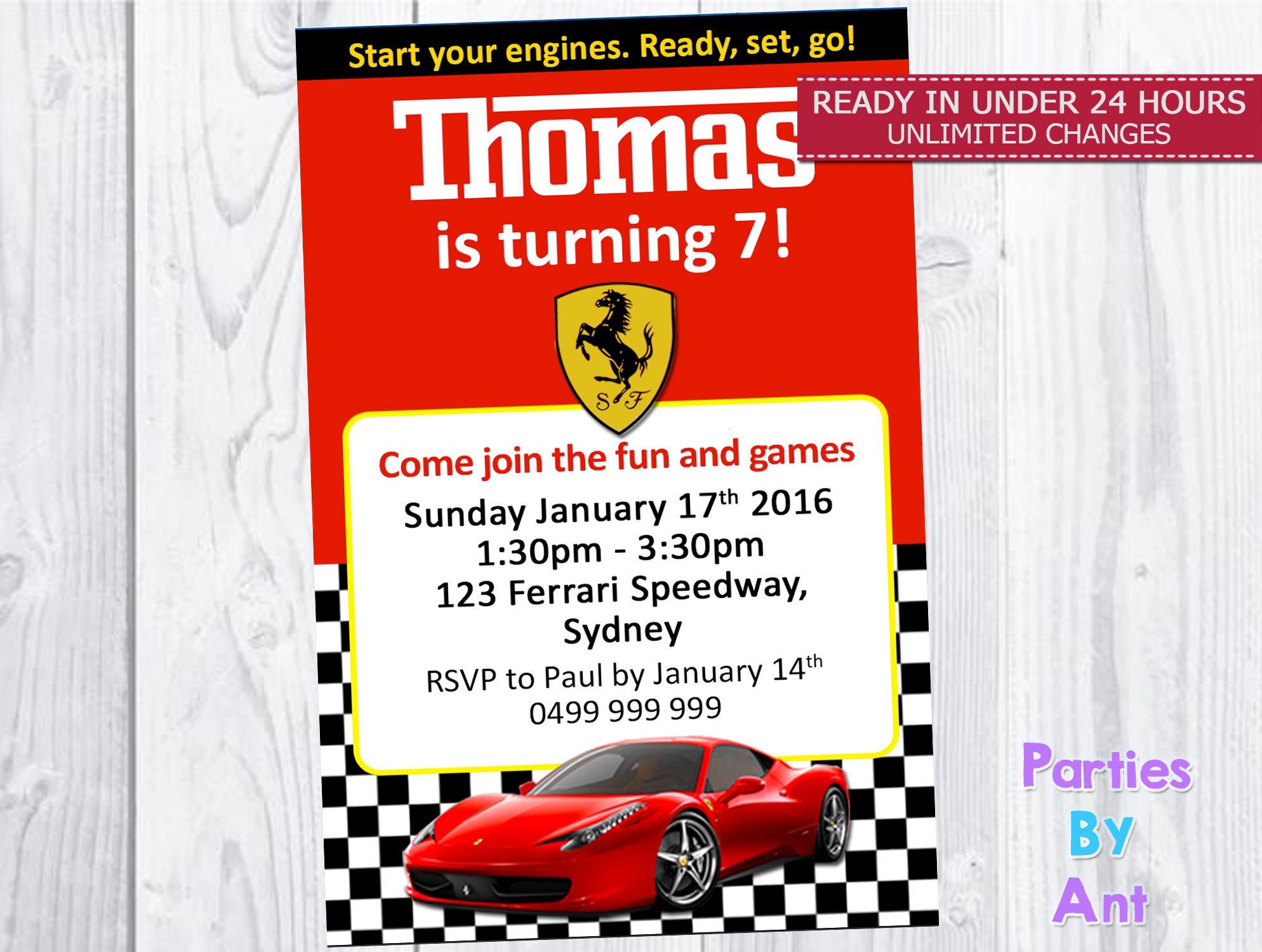 Gif. This cool ferrari birthday invitation has a car race theme and a colorful design. Ferrari birthday ferrari party ferrari invitation by luxylemon.
